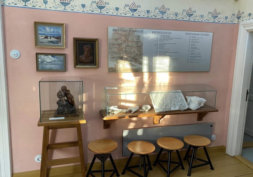 Adamsoni tuntumate teoste hulka kuuluvad Russalka mälestusmärk Tallinnas ja mitmed meretemaatilised skulptuurid, mis kinnitavad tema olulist rolli Eesti kunstiloos. Muuseumis toimuvad suvisel ajal erinevad kunstiteemalised töötoad ning huvilistel on võimalik tellida ka giidiga ekskursioon. Kõrvalhoones asub hooajaline galerii rändnäitustega ning kohapeal saab laenutada jalgrattaid, et Paldiskit omal käel avastada.