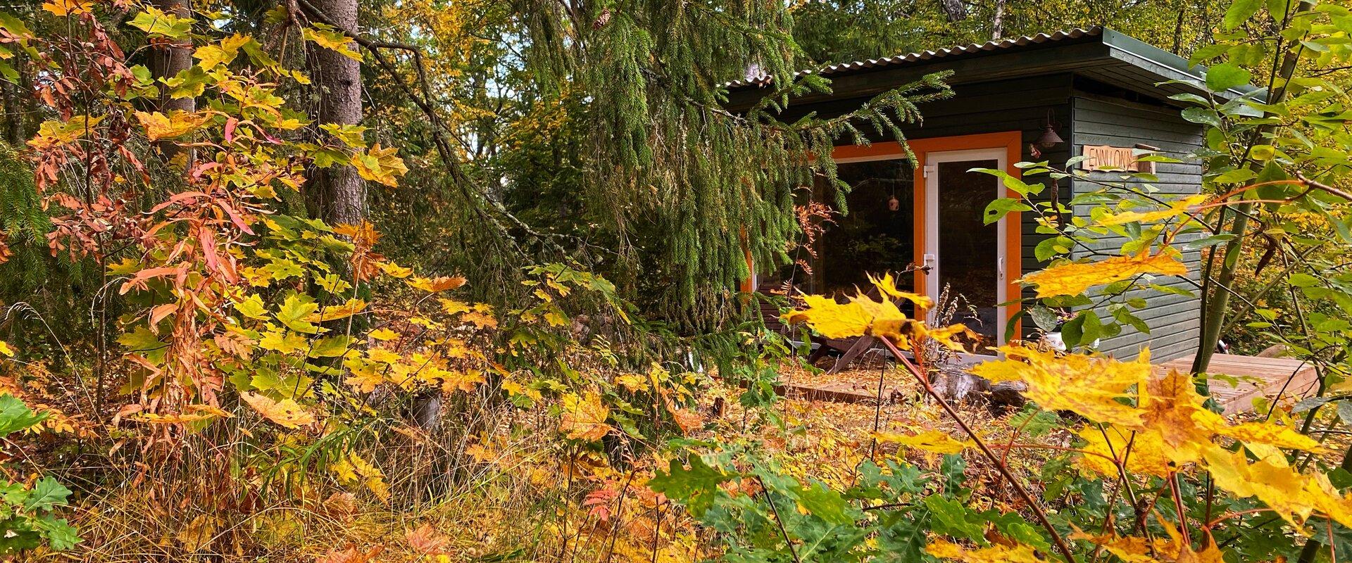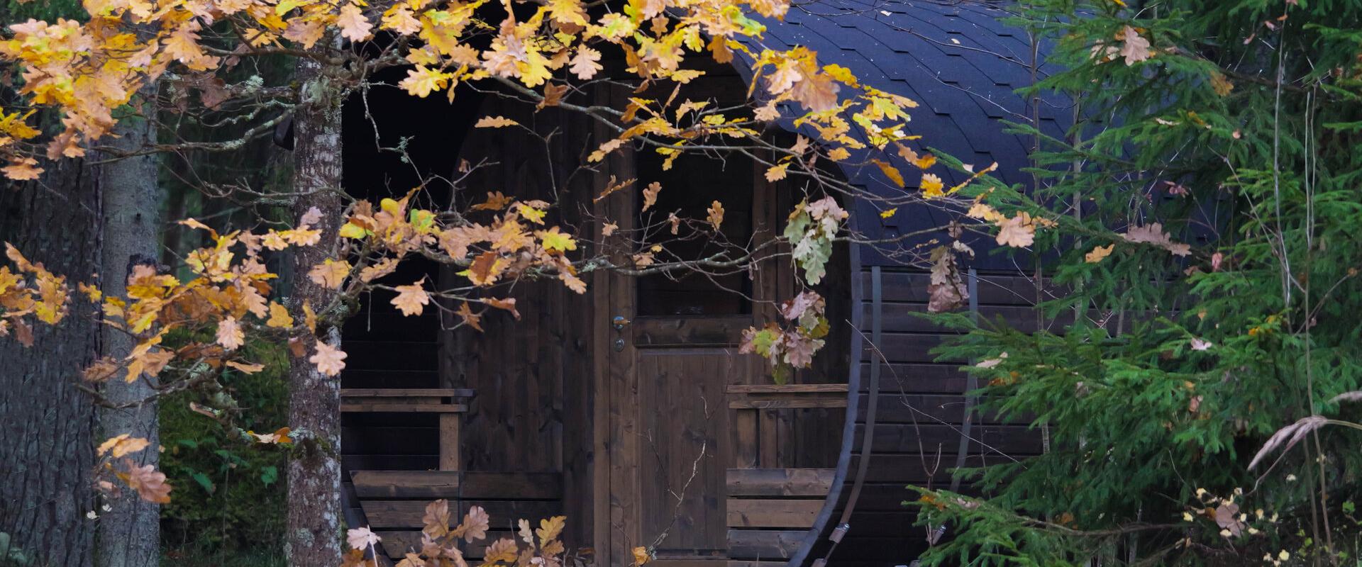 In der Hütte finden Sie ein gemütliches Wohnzimmer mit einem 120 cm breiten Bett für zwei Personen und ein WC/Duschbad mit allen Annehmlichkeiten. Bei kaltem Wetter können Sie sich in der Sauna neben der Hütte aufwärmen und an der dafür vorgesehenen Feuerstelle ein Feuer machen.