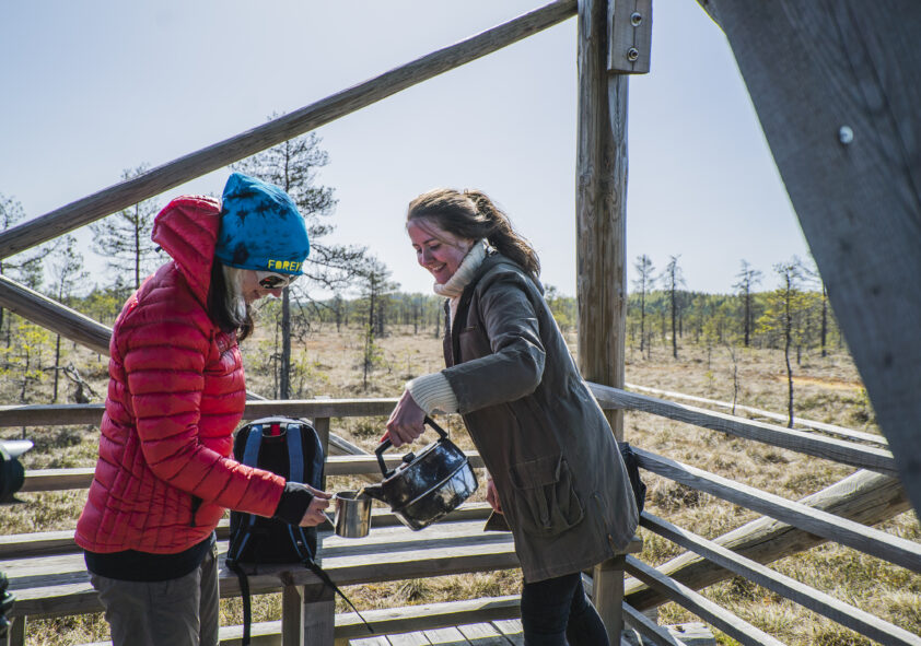 Gemeinsam mit einem erfahrenen Wanderführer erkunden wir die Natur zu Fuß oder mit Moorschuhen. Die Wanderungen finden in den Mooren der Nationalparks Kõrvemaa oder Lahemaa statt und bieten zu jeder Jahreszeit – im Sommer, Frühling, Herbst oder Winter – beeindruckende Ausblicke auf die nordestnische Landschaft und die Tümpel der Moore.