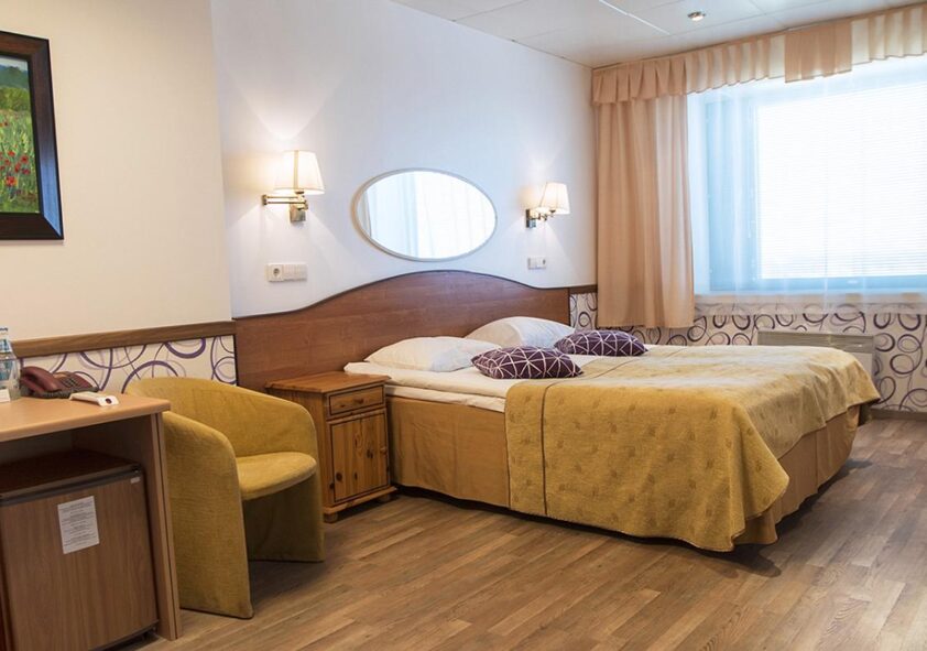 Wir haben 101 Zimmer mit gemütlicher Ausstattung, davon vier Suiten mit Sauna. Vorhanden sind auch Zimmer für Allergiker und Gäste mit eingeschränkter Mobilität. Das Frühstück und das Mittagessen können Sie im Restaurant des Hotels genießen.