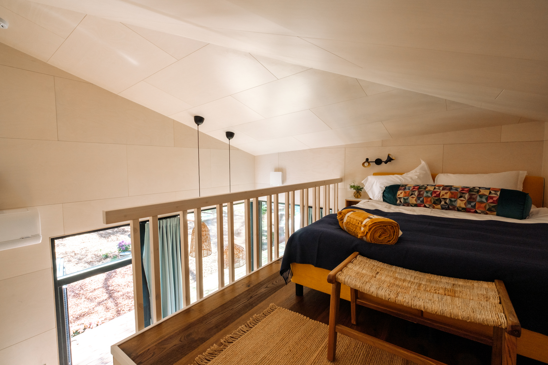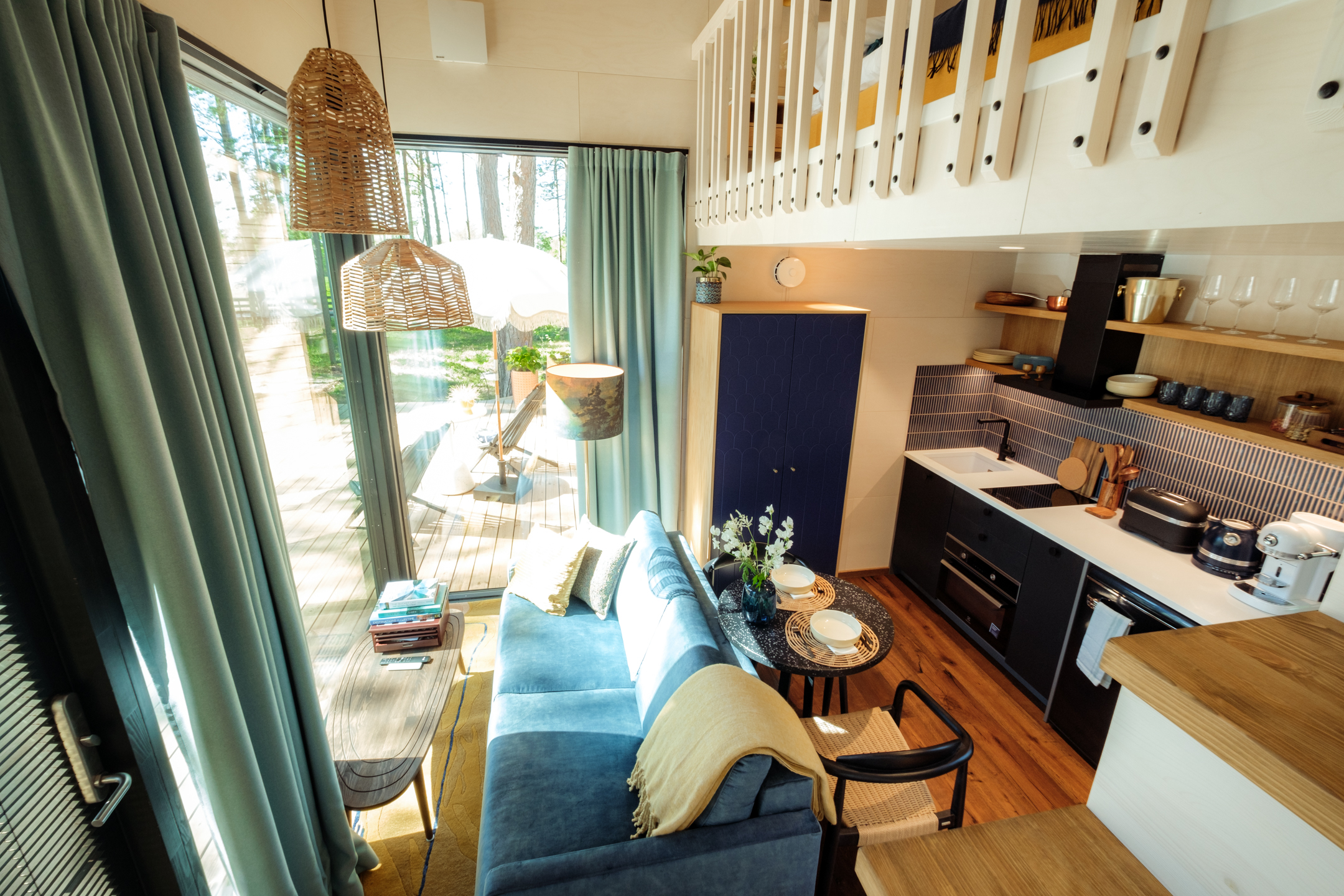Our three mini-villas are located in the forest overlooking the sea and follow the same architectural line as our restaurant. The mini-villas are designed for two adults, with the possibility of an extra bed for children.