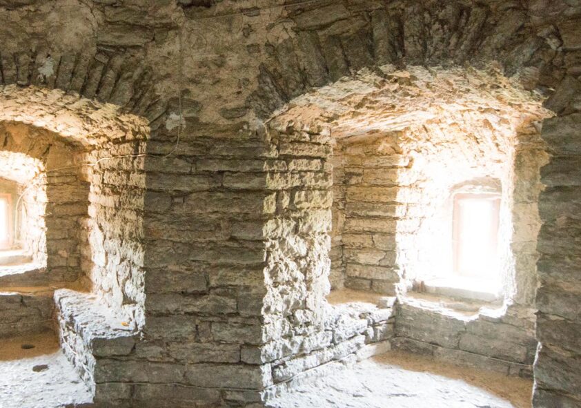 A narrow stone staircase of 215 steps leads to the top of the tower.