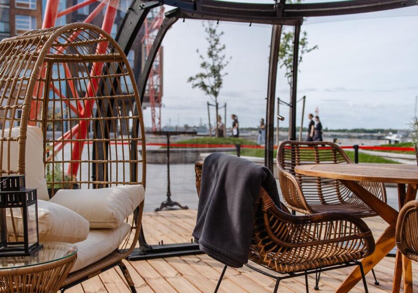 Klaar Modular domes create a unique atmosphere on our terrace, providing privacy together with the charm of the outdoors.