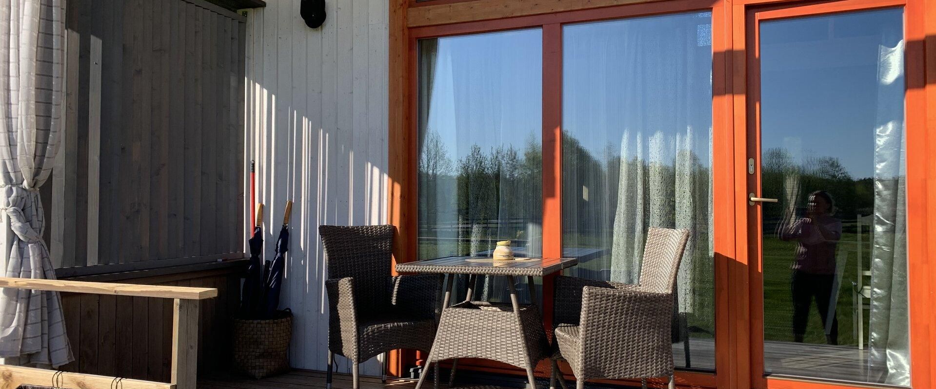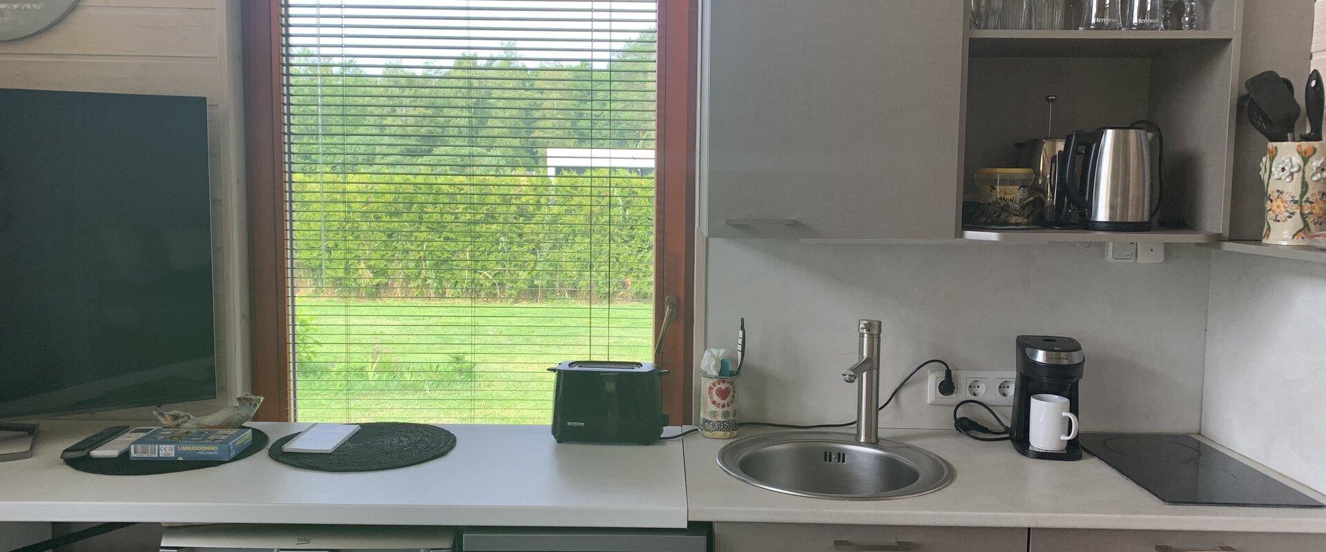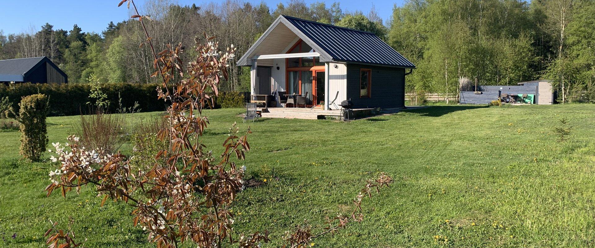 The Rannakaar Holiday House with modern amenities is located on the border of Lahemaa National Park, close to a sandy beach. The house has a kitchenette with everything you need, a bedroom that is separated with a curtain, a TV, a seating area, and a sauna.