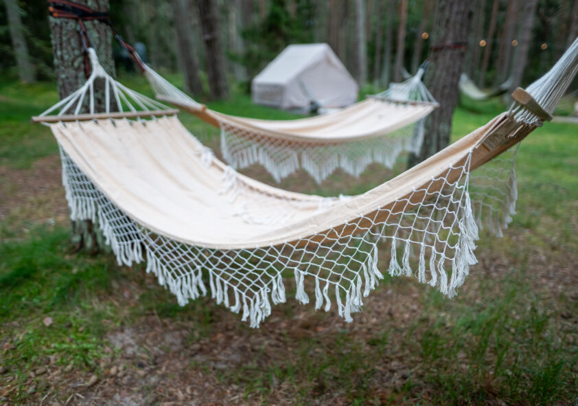 Lisäksi on mahdollista viettää yö 2-paikkaisessa kalustetussa ja sähköistetyssä glamping-teltassa. Tarjoamme myös romanttista telttasaunaa hiekkarannalla.