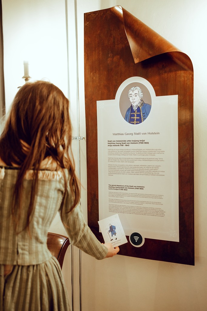 Anijan kartanon herrastalon läpi kulkeva ainutlaatuinen, elämyksellinen pysyvä näyttely on portti kartanon aikakaudelle. Aivan kuin herrasväki olisi juuri noussut ruokapöydästä ja lähtenyt kävelylle. Korvat kuulevat kartanon elämän äänet ja voivat aistia kadonneiden aikojen tuoksun. Vierailu pysyvään näyttöön sopii koko perheelle, ja sitä löytyy myös vierailijoilta, joilla on paljon historiallista kiinnostusta. Pienille vieraille on hauska ja opettavainen animaatio, joka selittää kartanon eri puolia. Oppaan johdolla tutustuu Viron kartanon aikakauteen ja saa interaktiivisen katsauksen Anijan kartanon historiasta.