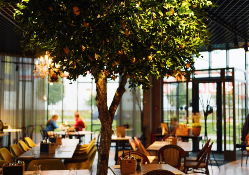 Ravintolan moderni sisustus, jossa jokainen yksityiskohta tuo tunnelmaan viihtyisyyttä ja välittää aurinkoisen Italian fiilistä ja ilmapiiriä, on virolaisen Limehouse Design -muotoilustudion käsialaa.