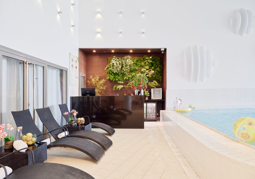Tarjoamme rentoutukseen vesi- ja saunakeskuksen 4 eri saunaa – suomalaisen saunan, höyrysaunan, suolasaunan ja tuoksusaunan. Relax-allas soveltuu erinomaisesti myös lapsille, Active-allas sopii pieneen pulahdukseen, lisäksi saatavilla on hierontasuihkut ja vastavirtalaite. Keskuksessa on myös kaksi poreallasta ja jalkakylpy, lisäksi avoinna on myös Fish spa.