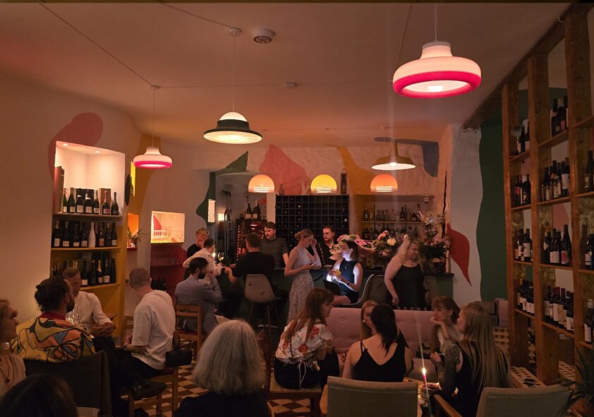 Viinibaarimme sisustus on leikkisä, eloisa ja rento luoden ihanteellisen ympäristön nauttia mukavasta tunnelmasta, viihtyisästä ilmapiiristä ja tietenkin laadukkaasta viinistä.