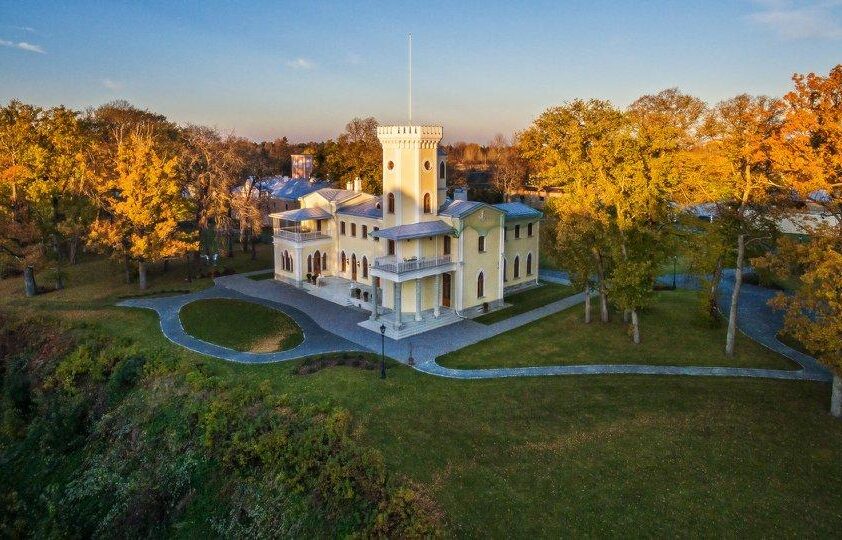 1833. aastal rajatud neogooti stiilis kompleksi autor on Hans von Stackenschneider, kellest sai historitsistliku stiili tähtsamaid esindajaid Venemaal.
