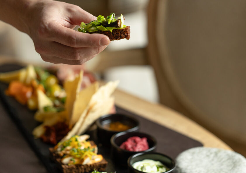 Mēs piedāvājam svaigu rupjmaizi ar kaņepju sēklām, paštaisītu saldējumu, pareizi nogatavinātu piena teļa gaļu un dārzeņus no Igaunijas laukiem. Sortimentā ir ziemeļzemju vīni, amatnieku gatavotas limonādes, kā arī nav aizmirsti alus cienītāji. Restorāna sirdī ir unikāla virtuve ar stikla sienām, kurā varat vērot ēdiena gatavošanu.