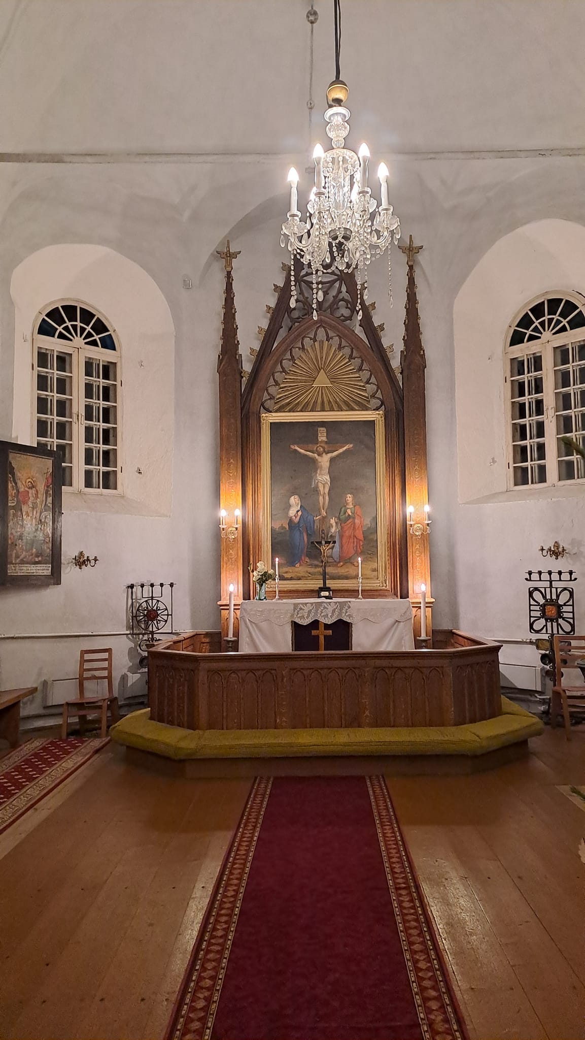 Einer Legende nach wurde die Kirche von einem Kapitän namens Mattias gebaut, der die Seenot überlebt hat. Dafür spricht auch der Standort der Kirche am Rande der Küstenterrasse. Die Haupttür der Kirche ist dem Meer zugewandt und an der Spitze des Schalldeckels der Kanzel (1784) befindet sich ein geschnitzter Sonnenring, den das Volk für das Steuerrad eines Schiffes gehalten hat.