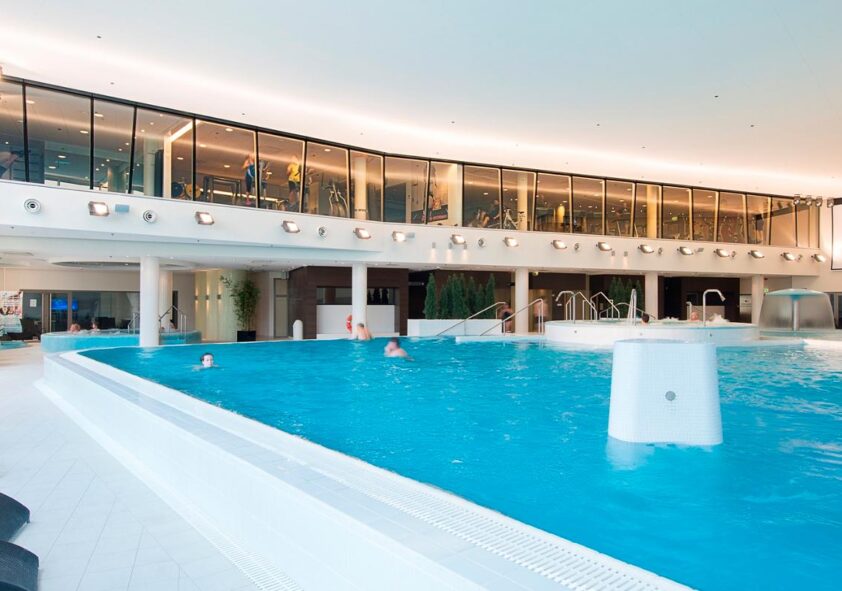 Den Gästen steht auch ein Wasser- und Saunazentrum zur Verfügung, wo es 4 Saunen gibt (Dampf-, Salz-, Aromasauna und Finnische Sauna), 2 Schwimmbecken, 2 Whirlpools und Kneipp-Fußwannen.