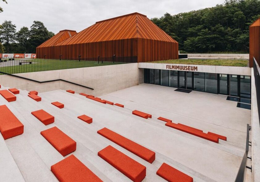 Maarjamäe lossipargis asuvasse Filmimuuseumisse juhatab efektse “punane vaibaga” kaetud filmiallee.