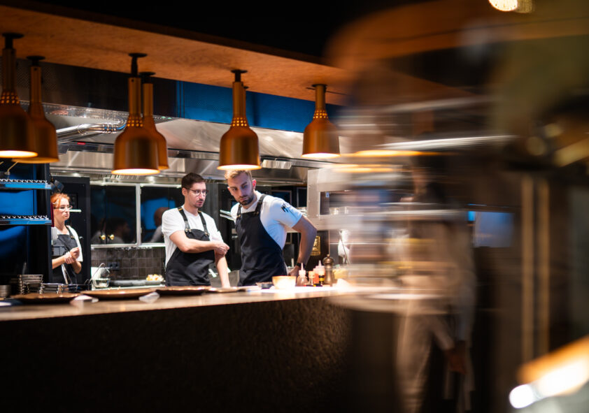 The menu focuses on quality ingredients and dishes prepared on an open flame, including fresh seafood, quality meat, and plant-based dishes. On the drink menu, you will find carefully selected wines, classic and modern cocktails, and an exciting selection of non-alcoholic beverages.
