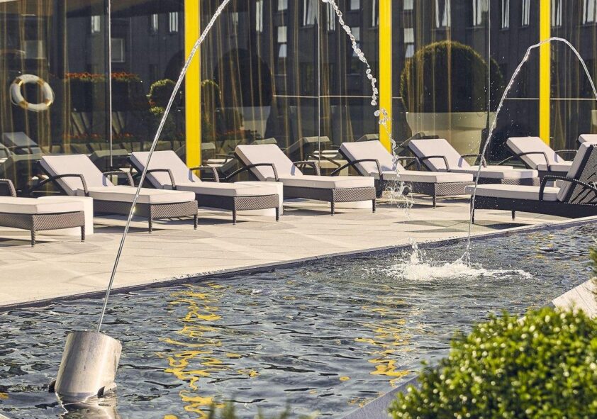In addition to different types of rooms, the hotel has 9 meeting rooms, a ballroom, a 24-hour business centre and an executive lounge, a fitness centre, a spa, an indoor pool and terraces. We also have a cosy meat restaurant called The Able Butcher.