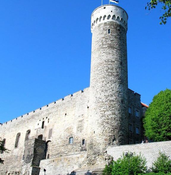 At the top of the tower, 95 metres above sea level, flies the flag that symbolises the ruling power in Estonia. The blue, black, and white of the national flag were first seen here on 12 December 1918 and after years of Soviet occupation, again on 24 February 1989.