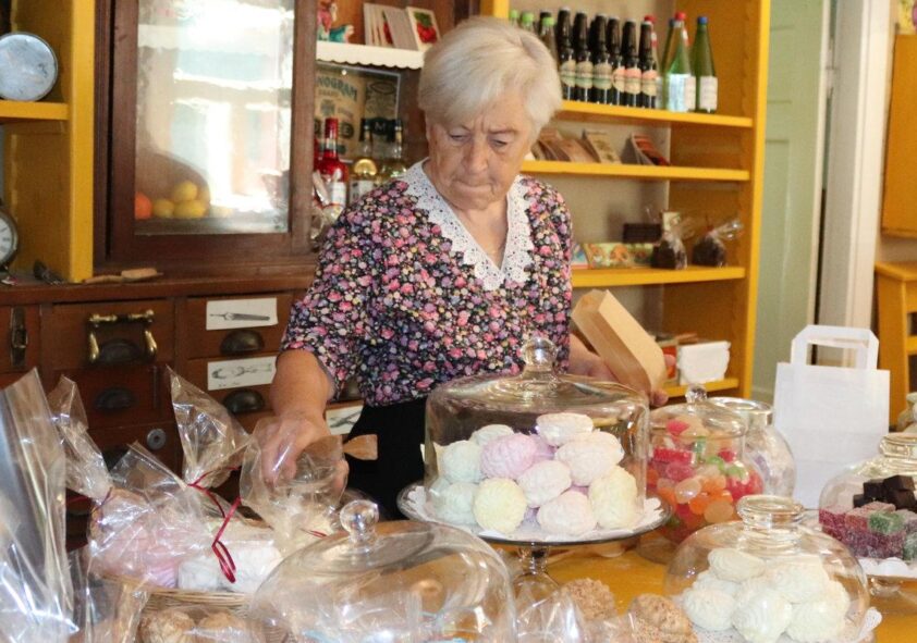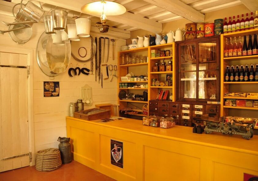 Kyläkaupan sisustus ja myytävät tavarat vievät vierailijat vuoteen 1938.