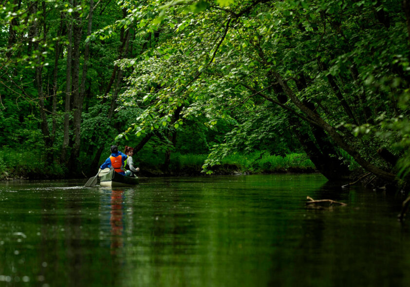 Päike sätendab käänulisel jõepinnal ja üle vee kostab linnulaul. Kulgeme koos 5–10 kilomeetrit mööda metsikut ja vaheldusrikast Valgejõge ning teeme peatuse, et nautida vaikust, teed ja suupisteid.