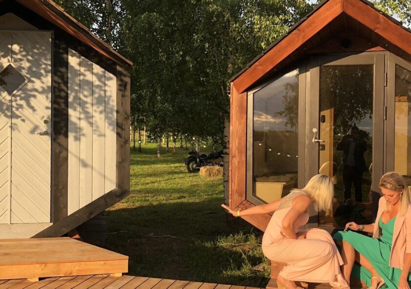 Väliterrass, kaks kahekordset puhkemaja töötubade või eraldi nõupidamiste jaoks.
