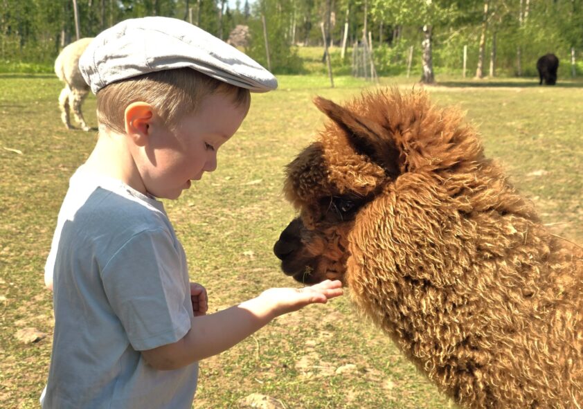 Muumioru Alpacafarm on ideaalselt sobiv sihtkoht kogu perele, kus ootavad Sind sõbralikud ja uudishimulikud alpakad. Siin saad vahetu kontakti loomadega – koos giidiga on sul võimalik astuda otse alpakade karjamaale, neid paitada, toita ja kogeda tõelist lähedust nende pehmete loomadega. See on elamus, mis rõõmustab nii suuri kui väikseid!