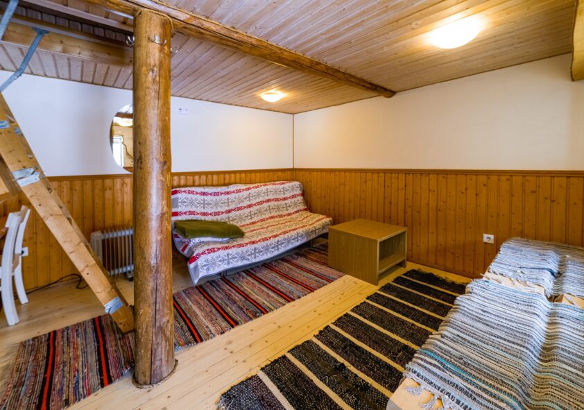 2-korruselises Matkamajas ootab sind ruumikas olenguruum kööginurgaga. Teisel korrusel on magamistoad, pesuruumid on üldkasutatavad – lihtne ja oma seltskonnale sobiv. Palkmajas saad ajas tagasi minna: majutud madratsitel ning naudid hubast olenguruumi, väikest kööginurka ning tualett- ja duširuumi. Saunamajas algab õhtu leilidega: I korrusel on saun, II korrusel magamistoad ning ühiskasutatavad tualettruumid.